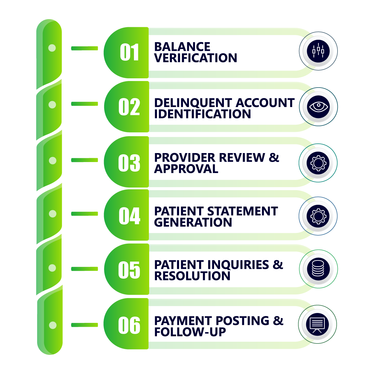 We provide end-to-end patient billing solutions that help healthcare providers streamline their revenue cycle: